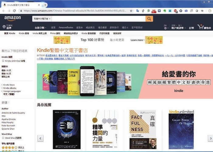Amazon 亚马逊kindle 繁体中文电子书店悄悄上线
