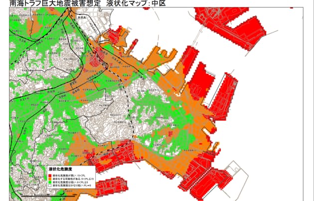 南海トラフ巨大地震 液状化分布図 横浜市