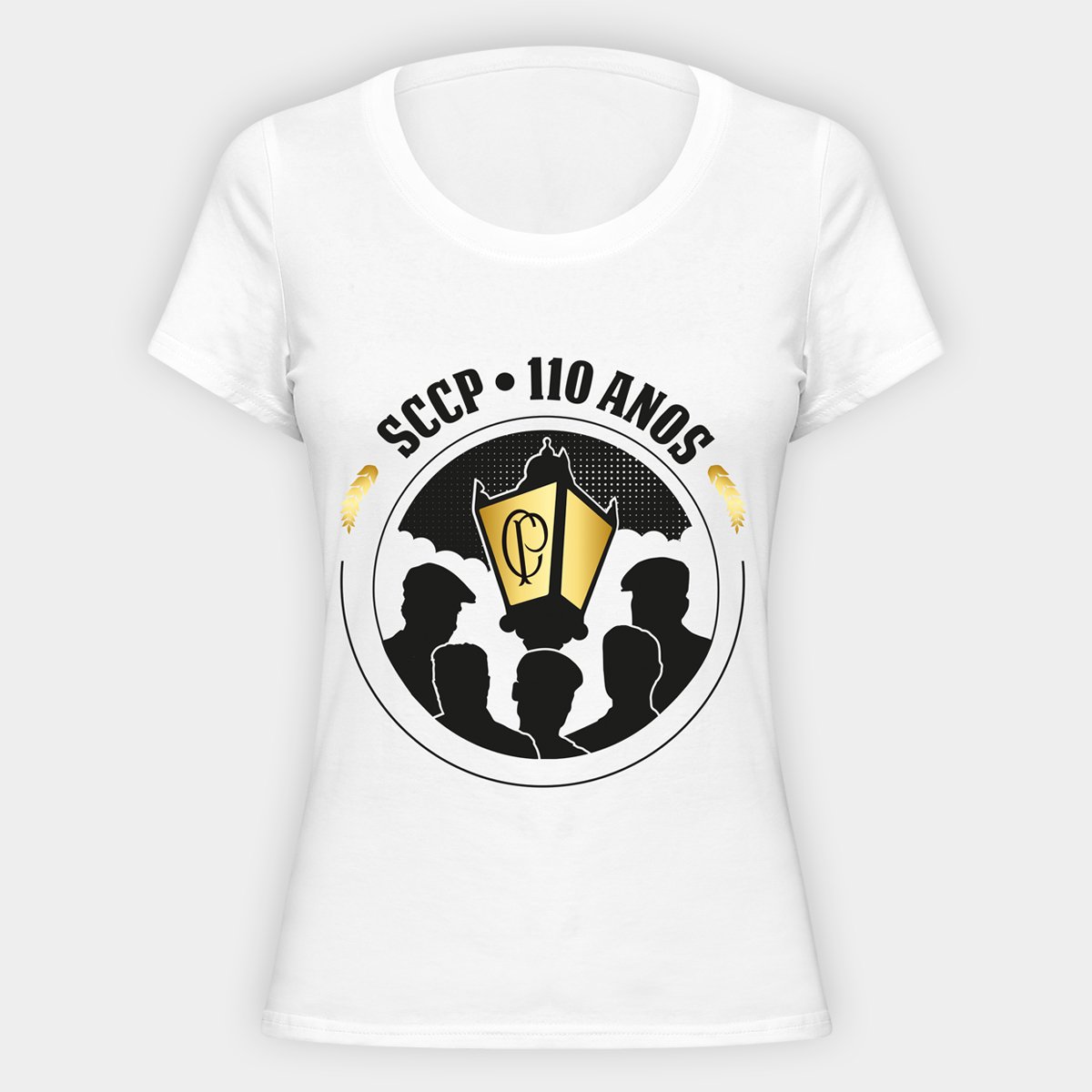 Camiseta Corinthians 110 Anos Dourado Feminina Branco Shop Timao